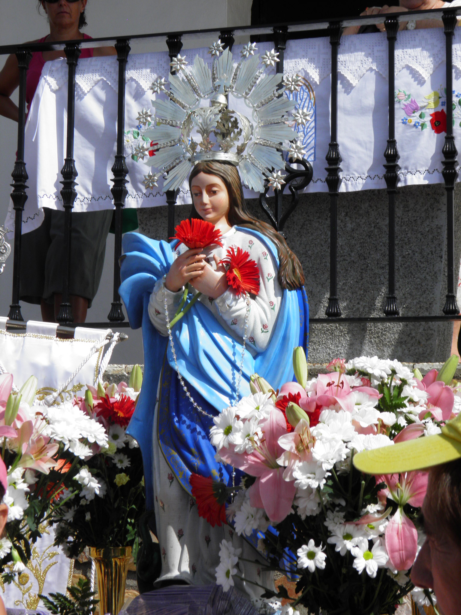 Consiste en el traslado procesional de la Virgen desde la ermita hasta la iglesia del pueblo unos días antes y el día 15 por la mañana, es trasladada de nuevo a su capilla en la ermita donde se realiza la romería.