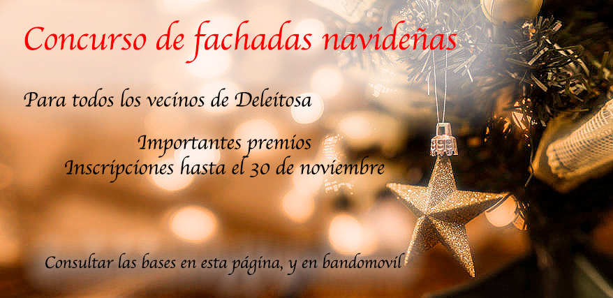 Concurso de Decoración de Fachadas Navideñas. 15 noviembre 2023 Documentos CONCURSO DECORACIÓN FACHADAS NAVIDEÑAS.pdf (pdf 581,2 kB)